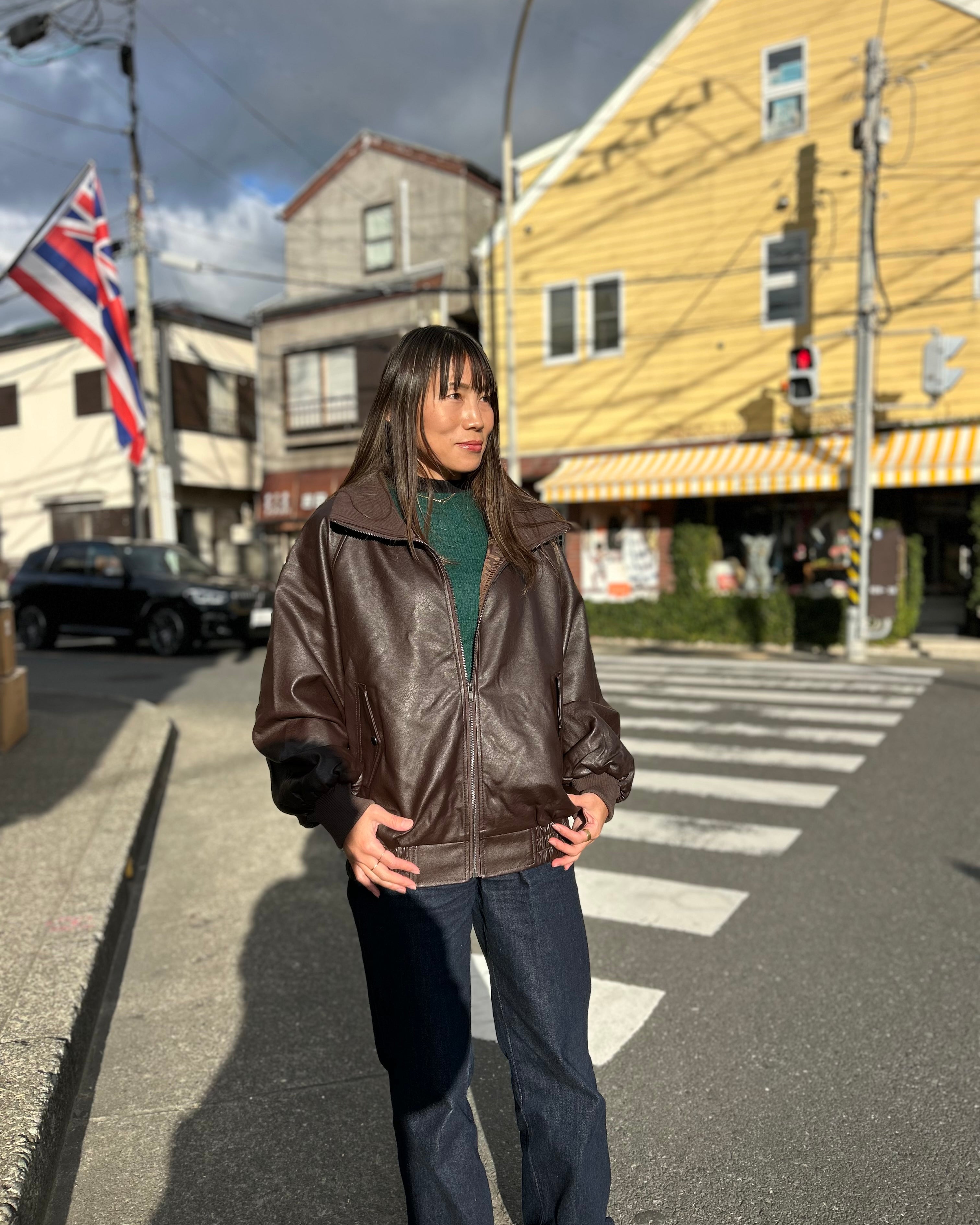 UIS STAND COLLAR LEATHER JACKET